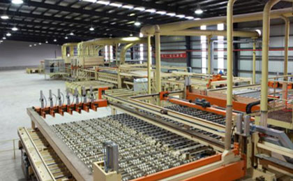 生产线生产能力: (500m -1200) m3/日(年生产天数:300天、每天班数:3班、每班有效工作时间:7.5小时、以生产4‘X 8’幅面 厚度 12mm规格成品板计算产能)